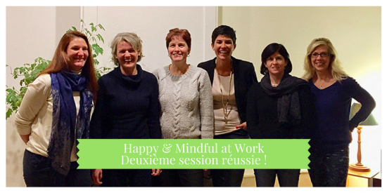 Deuxième session de la formation Happy & Mindful at Work qui se termine avec des participantes souriantes ! 6 séances pour apprendre à travailler autrement ! Fini le mal-être au travail ! « Cette formation m’a permis d’être plus à mon écoute et de ressentir la gratitude. J’ai maintenant des outils concrets pour passer plus de temps à construire…